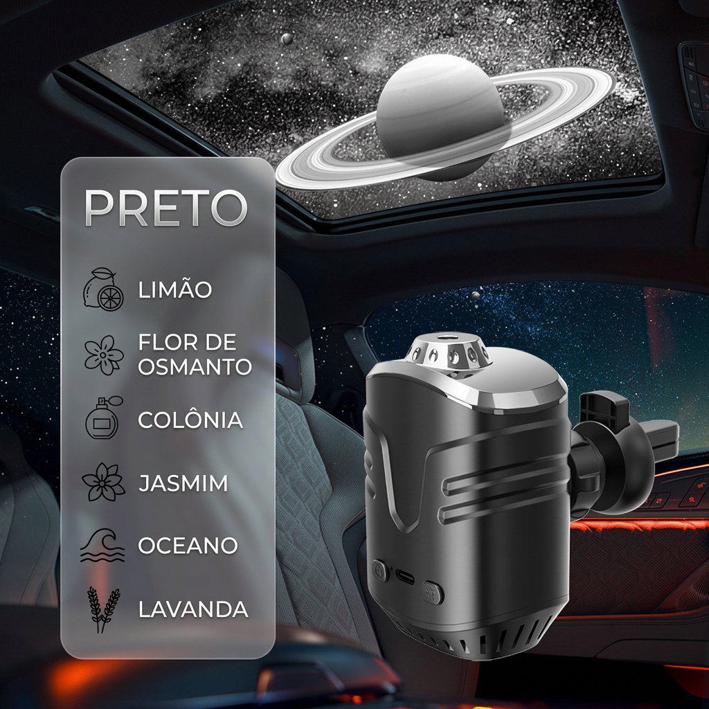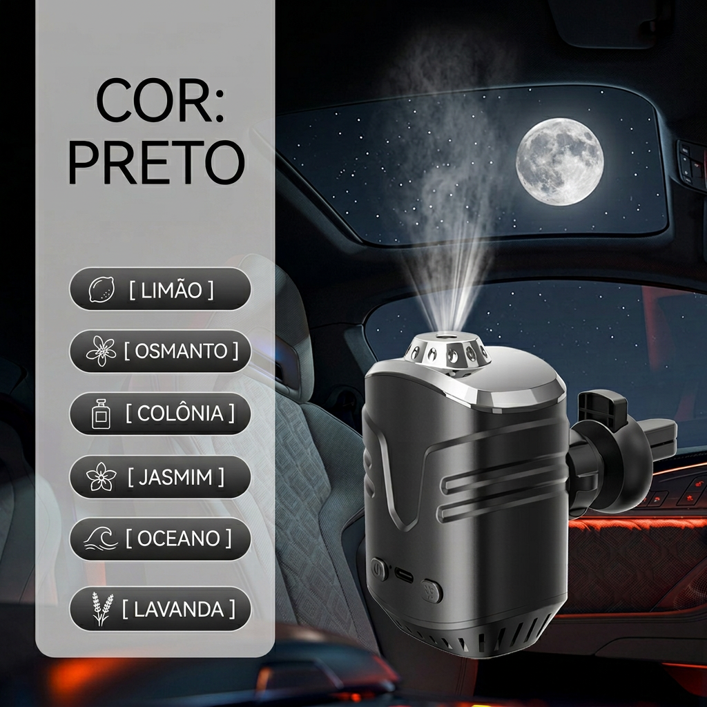 • Iluminação Atmosférica: Projeta o universo no teto do carro com efeitos visuais imersivos.